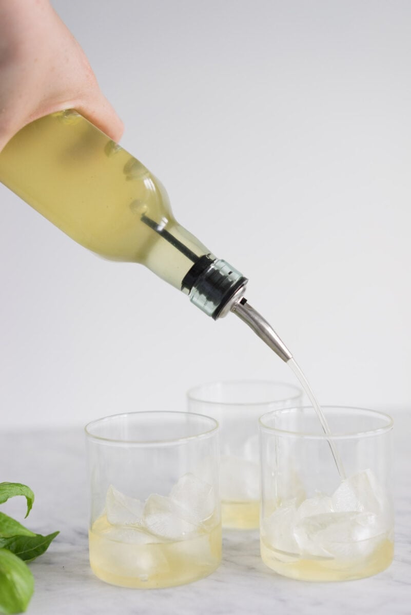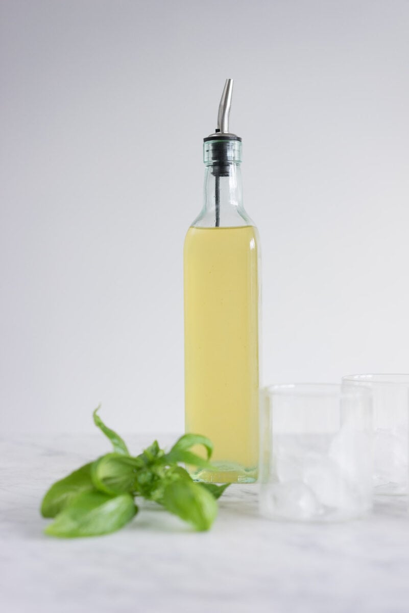 - Place water, lemon juice and sugar into a small pot over medium heat. Heat until sugar is totally dissolved, then add basil leaves, and leave to infuse as the syrup cools. Cool completely and transfer into a bottle.