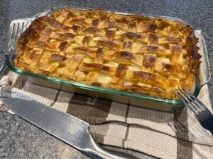 - Because of the herringbone lattice I chose, I used quite a lot of pie dough. If you were wanting to do a different lattice with spaces between the strips, you could cut down on the amount of dough you make a little.