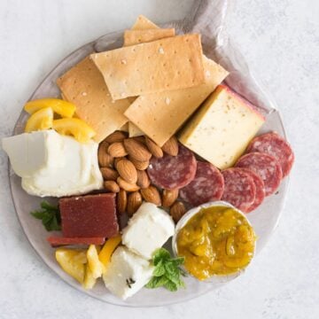 I tend to just throw whatever I have in the fridge on the board. I usually try to go for something soft, something harder, something interesting, and something goaty, and then just some interesting add-ons, something sweet, and some sort of relish. This time I went with a cumin seed gouda, a marinated sheep and goat feta that I am OBSESSED WITH and you must try immediately, and a Vermont Creamery Coupole. I had plans to also pop on a bit of sharp cheddar, but I think I got hungry and carried away, and found it on the bench after the shoot. I also added some almonds for a bit of texture, a really nice salami, and some preserved lemons, because they go on / in everything these days since I made a giant jar a few months ago. Then there was a little brick of home-made quince paste, which I inadvertently made a GIANT TRAY of back in quince season (will share the recipe this season), so we are still working our way though it 6 months later. Luckily it keeps well. I finished the board off with some crackers, a little fresh mint, and a home-made zucchini relish, which has become a total fave in our house!