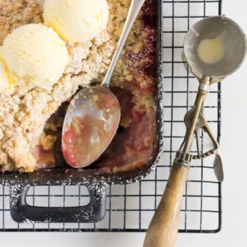 - Bake for 30-40 minutes, or until the topping is golden brown and the fruit is bubbly. Allow to stand for 10 minutes, then dust with icing sugar. Serve with the Kaffir Lime Ice cream.