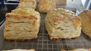 I made the cheese scones today, added a splash more of milk and 3/4 tsp of salt. They turned out awesome, so tasty and the lamination definitely worked! At this rate I'm making a new Cloudy recipe every few weeks, they always work 🙂