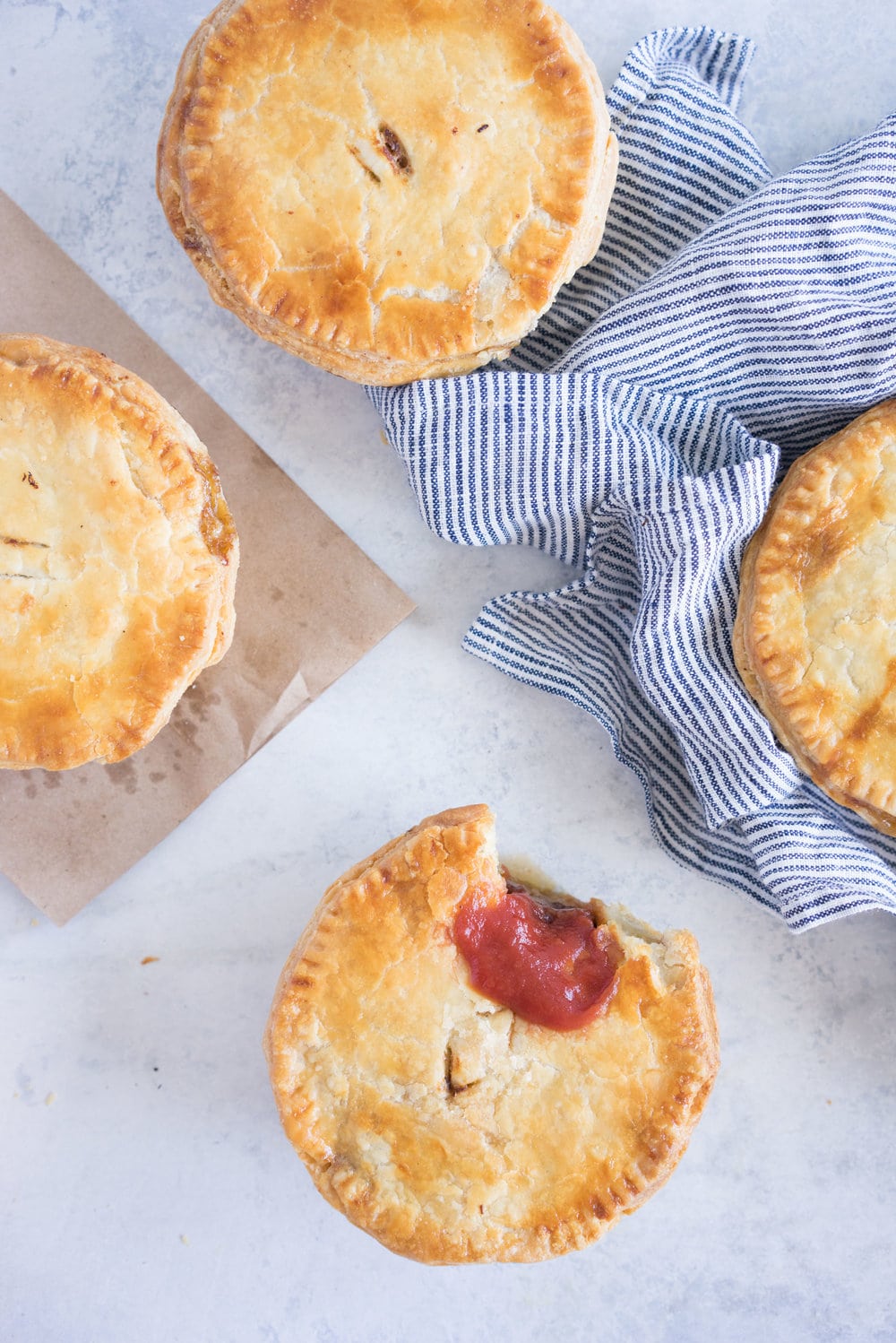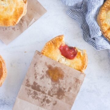 - Rest the pies in the fridge for 20 minutes. While they are resting, preheat the oven to 350˚f / 180˚c. Brush the tops of the pies with eggwash. Bake for 30-40 minutes, until the pies are golden brown and the filling is bubbly. Remove from the oven and cool slightly before serving. Leftovers can be frozen.