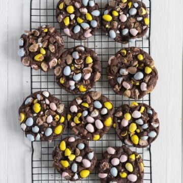 - 2 x 185g (10oz) bags of candy coated chocolate mini eggs (I used cadbury), roughly chopped