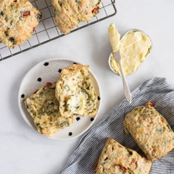 Scones for breakfast are one of my fave things! I grew up in a house where emergency scones were whipped up on the regular - our house was somewhat of a community train station with people popping in to say hi or to have a cup of tea all the time. Savoury scones are so under rated - you can add whatever you like to them, they come together fairly quickly, and are perfect to whip up in the morning for a morning tea or a light lunch. That goes for scones in general, but I do think that Savoury scones need a little more loving.