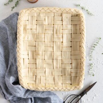 - If you want to make this with store bought puff pastry, you will need about 1kg. Home made pie dough will also work amazingly! This quantity will work - leave out the sugar. I did do a fairly tight lattice, which means that you need double the area of the top of the pie to make enough strips (full size of the top for the horizontal, and full for the vertical) which means the top is quite crust heavy, but I love a good pastry to filling ratio, so you can do a wider lattice if you would like less pastry.