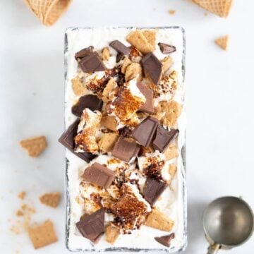 Because the ice cream base was so easy to make, putting together this ice cream was stupid simple. All I did was churn the ice cream, then layer with the marshmallow pieces, which I lightly toasted, some graham cracker chunks, and some chopped chocolate. All you have to do is layer it lasagna style, freeze until solid, and you are good to go. I used homemade marshies but store bought would 100% work perfectly here too, and make the process even easier. If you haven't ventured into homemade ice cream before, this would be a great place to start.