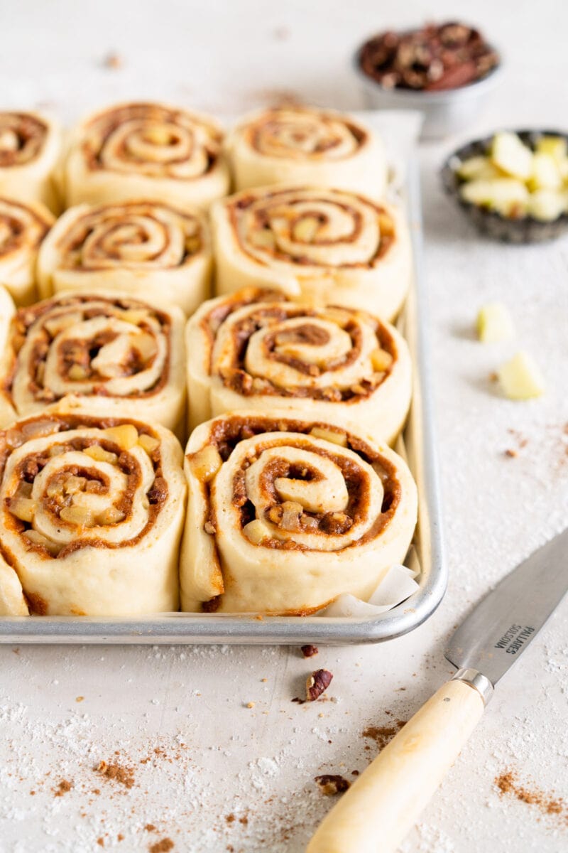 I developed this Apple Cinnamon Roll recipe with breakfast in mind, so you can prepare all the components the night before, making assembly the next morning super easy.