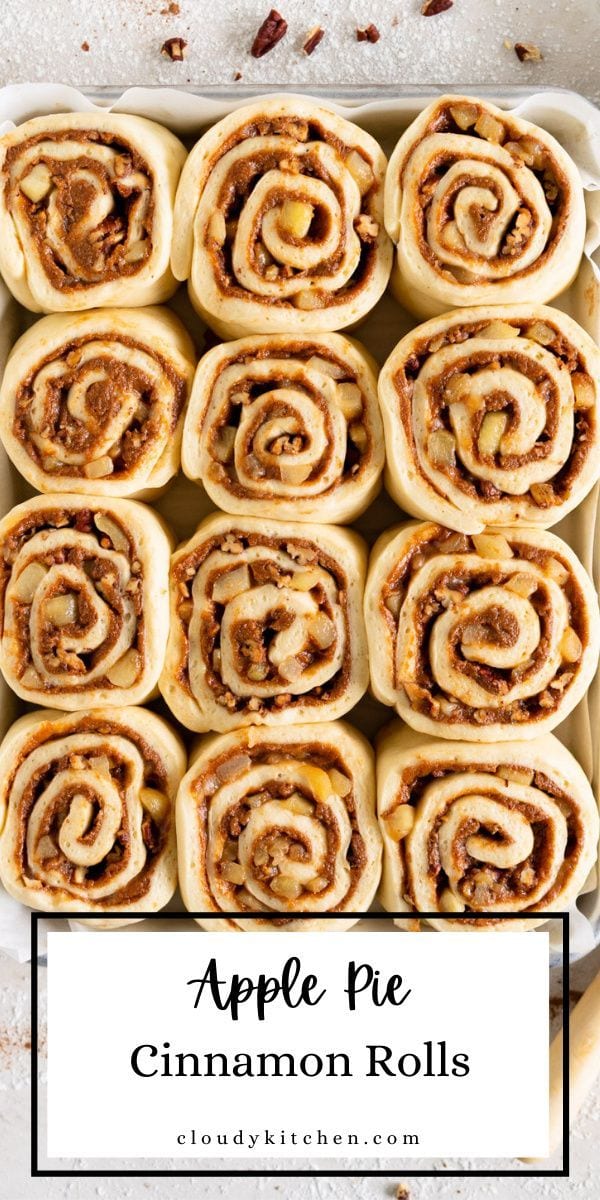 These Apple Pecan Cinnamon Rolls are super gooey and delicious. They are filled with a cinnamon brown sugar filling, a cooked apple pie filling, and toasted pecans. They are then finished off with a smooth cream cheese frosting. The components for these Cinnamon Rolls can be made ahead of time, meaning the rolls just need to be assembled in the morning for the perfect Thanksgiving breakfast!