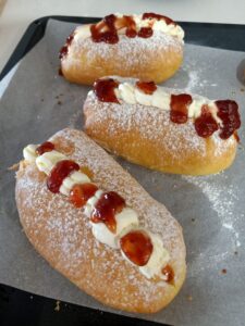 Baked Cream Buns with Vanilla Bean Cream and Jam