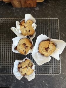 Hi hi! Just popping in to share this recipe for my super easy homemade banana chocolate chip muffins! These are a bit of a riff on the recipe that I grew up eating that my Mum made. I have been meaning to get a non vegan version of my vegan banana muffins up here for a while, because we all love options!