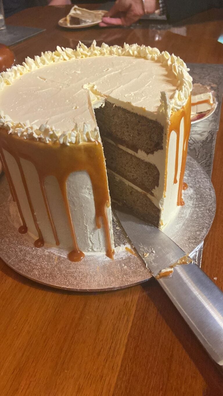 I made this a few weeks ago before we went into lockdown so shared it with a lot of friends. If you were looking for smaller quantities you could halve the banana cake recipe and bake it in 6” pans instead for a smaller cake!