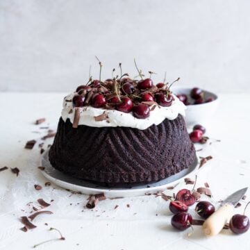 Black Forest Bundt Cake (Chocolate Cherry Bundt Cake with Whipped Cream and Cherries)