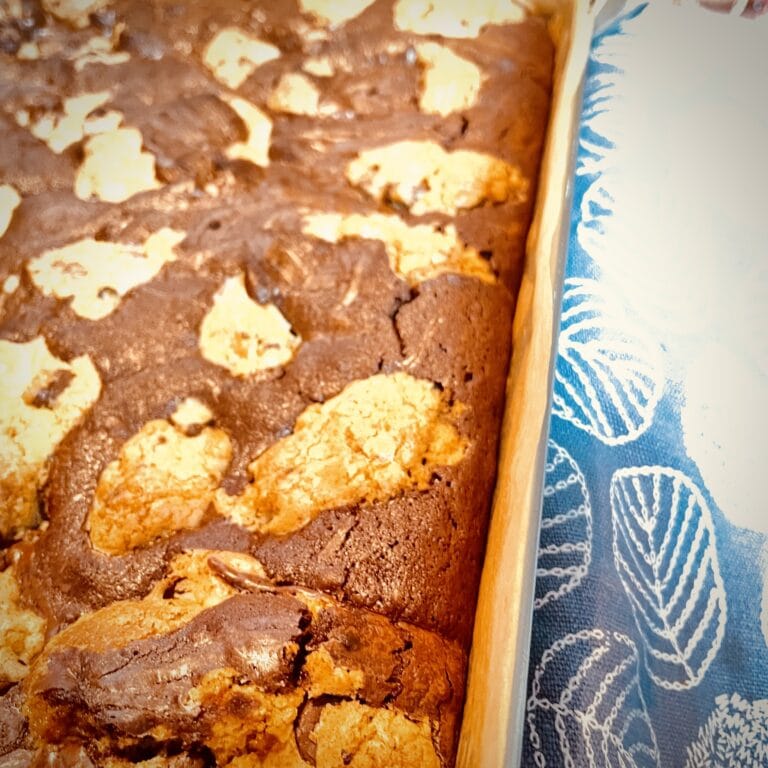 This was worth using most of my mixing bowls for the two batters and making a mess of the kitchen! It keeps well for the week so the slices remain nice and moist for my kids’ and husband’s lunchboxes! (My brownie batter seemed to be more runny than your one though..not sure why as I weighed out the ingredients.)