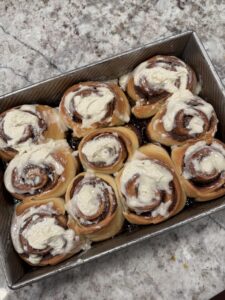 This is my go-to cinnamon roll recipe. The flavor the brown butter adds is just incredible! I’ll note that I only browned 420g of American generic grocery store unsalted butter, and it yielded 343g of brown butter. I scaled the frosting recipe down slightly to account for being slightly short on the quantity of brown butter.