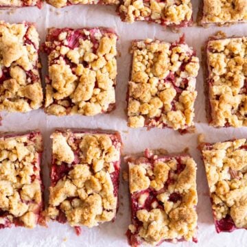 Brown Butter Hazelnut Strawberry Rhubarb Crumb Bars