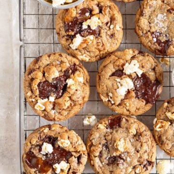 - If the cookies have lost their round shape a little in the oven due to the caramel, you can use a round cookie cutter slightly larger than the cookie to nudge it back into a circular shape. Sprinkle each cookie with coarse sea salt, then cool on the tray for 10 minutes before transferring to a wire rack to cool completely.
