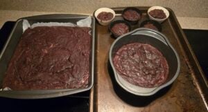 - The recipe needed to be a cocoa based brownie. My classic fudgy brownie recipe which relies mainly on chocolate and butter for the fudgy finish needed to be switched up, as my regular recipe was too gooey. A cocoa based brownie is much chewier and far easier to get out of the pan.