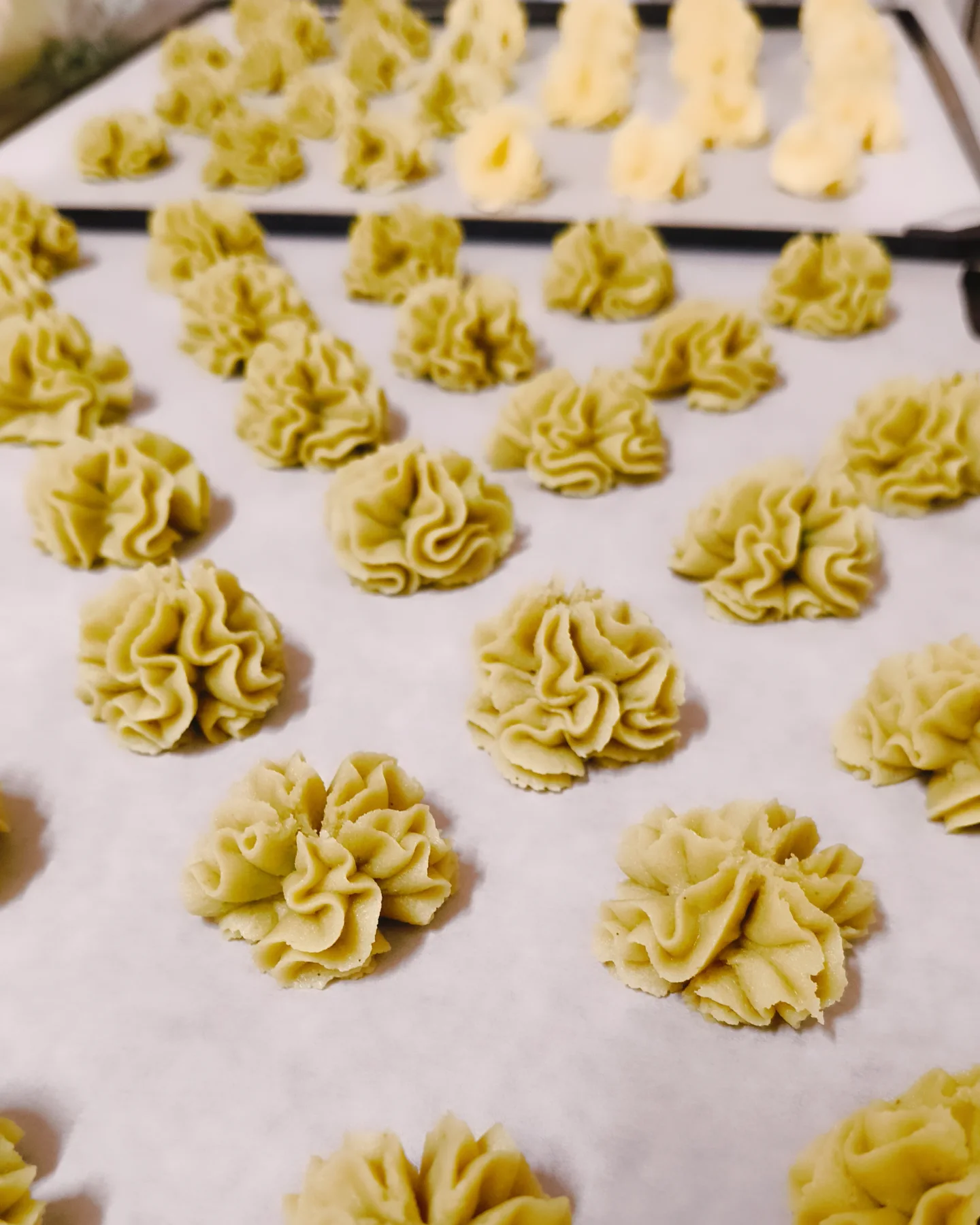 Amazing! Turned out really well and the flavour is perfect! I used them to make piped Lunar New Year Cookies, so made some according to the recipe and for another batch some matcha flavoured ones. Both turned out fantastic!