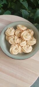 It can be a little hard to manage the piping bag when it is filled with the butter cookie dough. If you are finding this, it is easier to manage when there is less mixture in the piping bag, so start with about half the mix in the bag, pipe out your cookies, then add the rest. This is particularly helpful if you have smaller hands or struggle with holding things.
