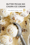 I used a no churn ice cream base for this butter pecan ice cream recipe. No churn ice cream is made of whipped heavy cream and sweetened condensed milk, and the cream mixture can be mixed up and put straight into the pan to freeze - no ice cream maker needed. Often ice cream recipes use egg yolks - this is made with just cream and condensed milk so is a great egg free ice cream recipe if you need one!