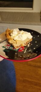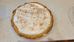 - Whipped Cream - The whole pie is finished off with a thick layer of whipped cream, and a little cinnamon.