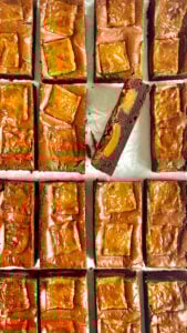 - Dot the caramel squares over the surface of the brownie - see image in the blog post for a visual reference. You may not use all of the caramel, I usually have a few pieces leftover that I store in the fridge.