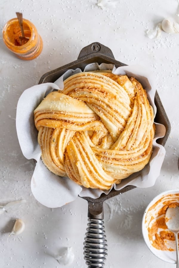 Roasted Garlic, Tomato and Ricotta Pesto Brioche Knot