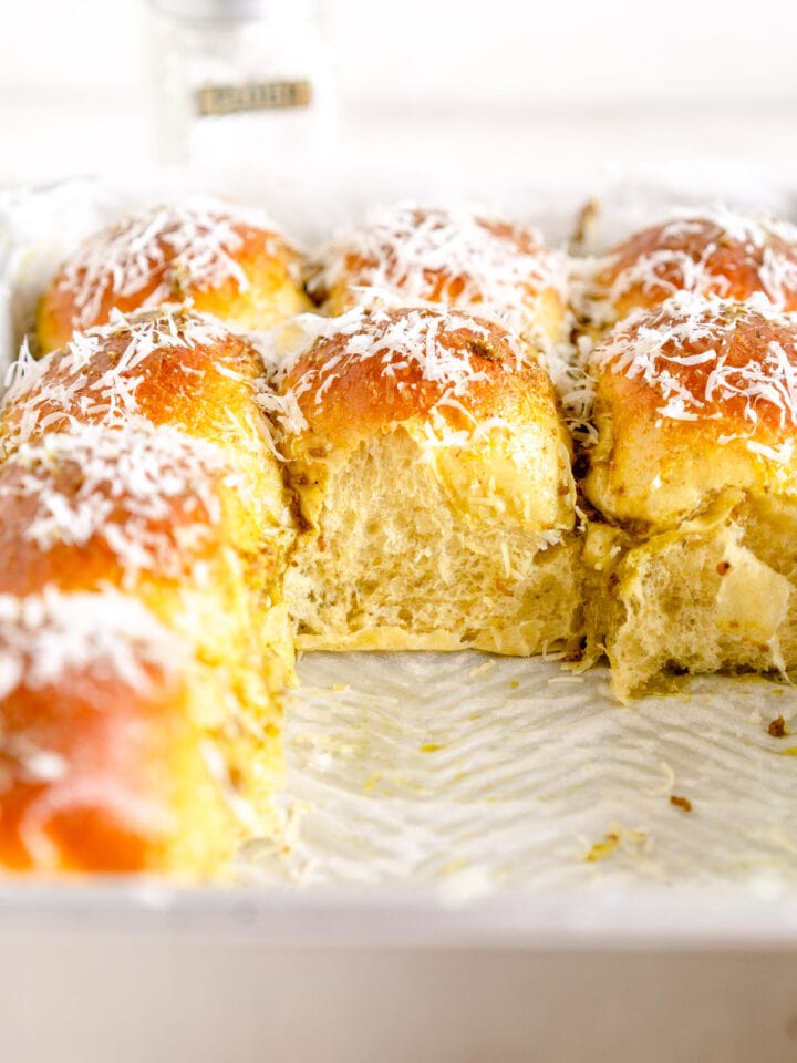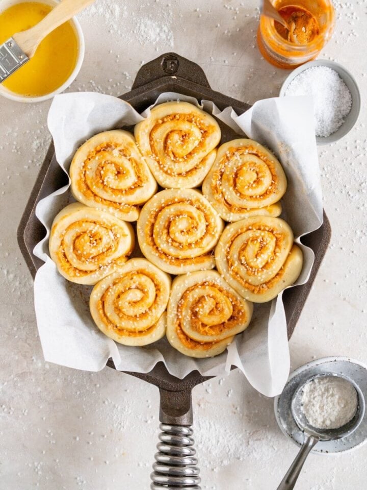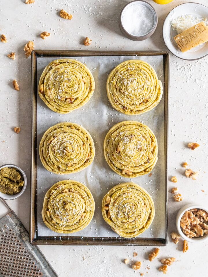Laminated Brioche Pesto Buns with Lemon, Parmesan, and Walnut