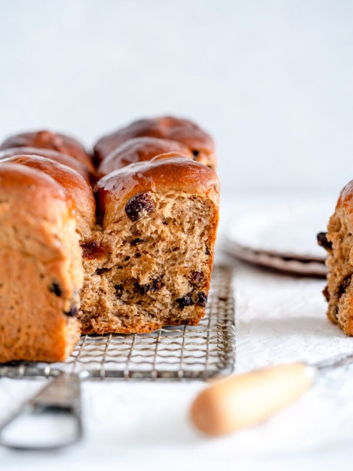 Soft and Fluffy Chelsea Buns (Custard Raisin Buns)