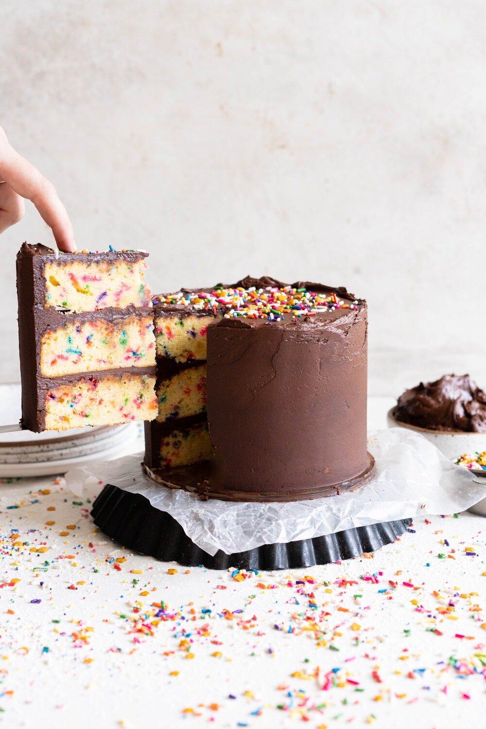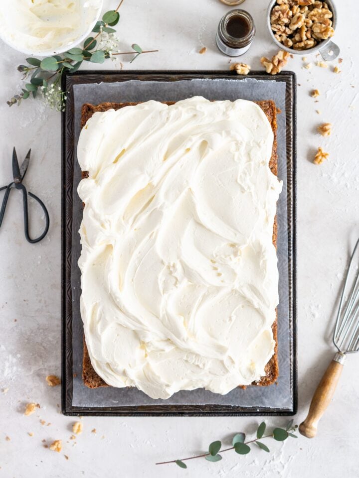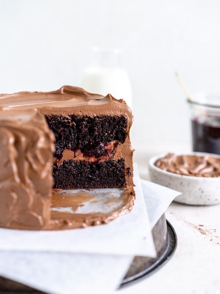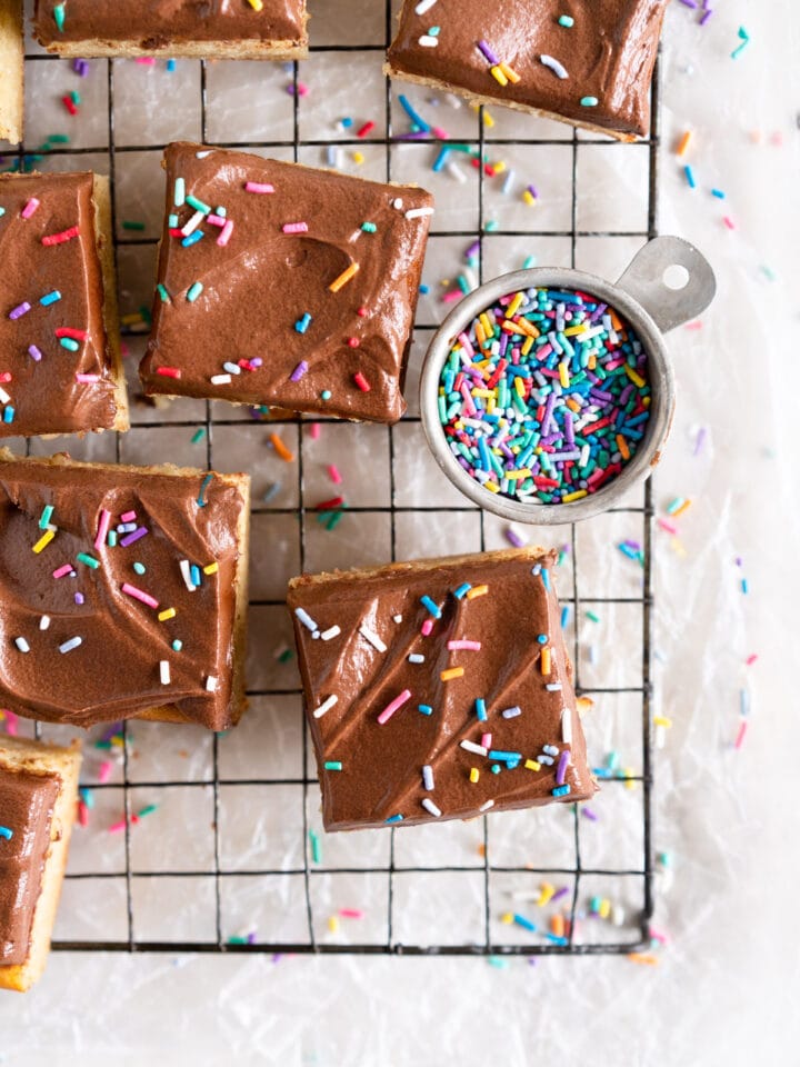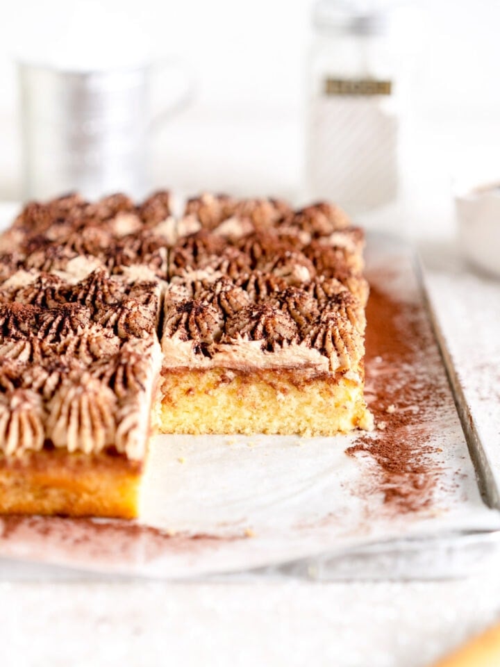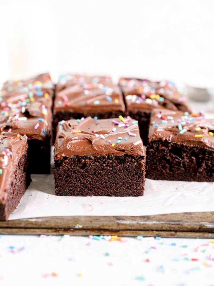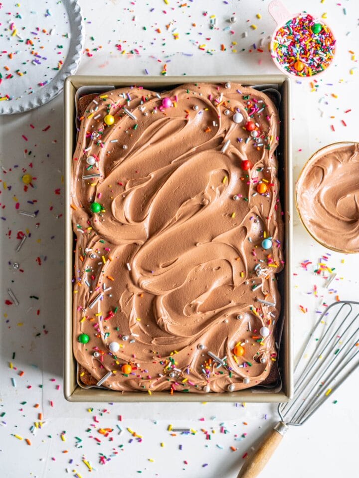 Chocolate Olive Oil Sheet Cake with Milk Chocolate German Buttercream