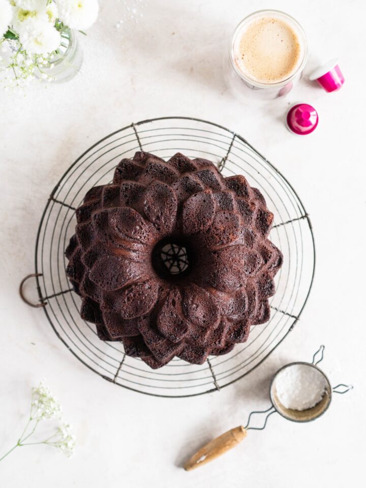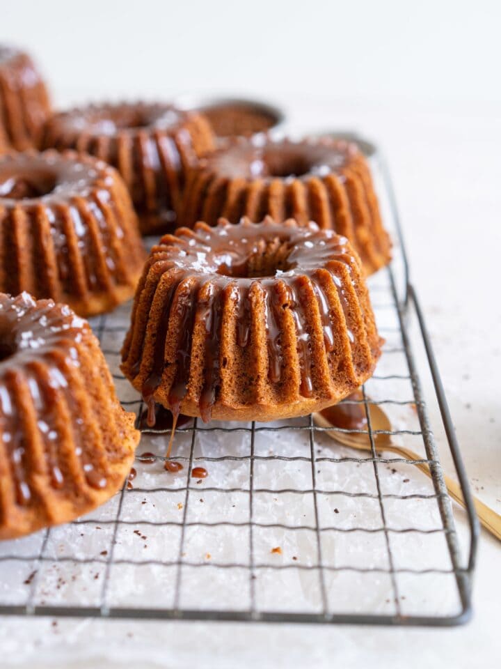 Mini Banana Bundt Cakes with Coffee Salted Caramel