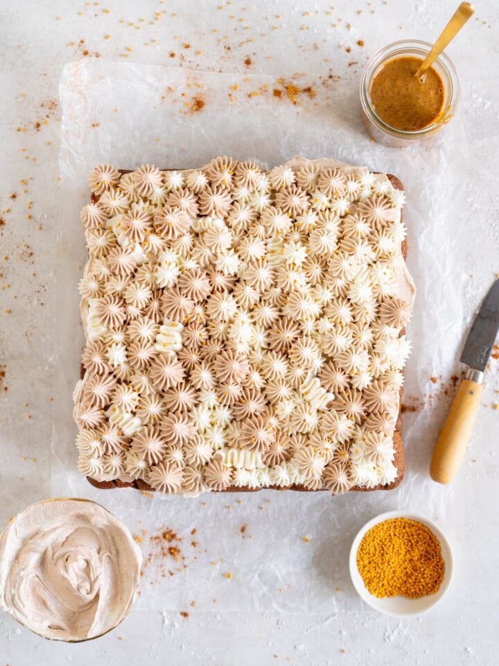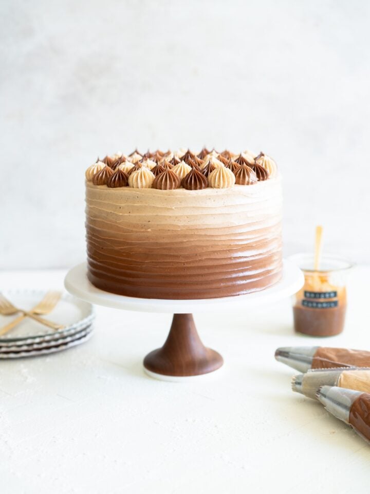 Apple Snack Cake with Ombre Walnut Praline Swiss Meringue Buttercream