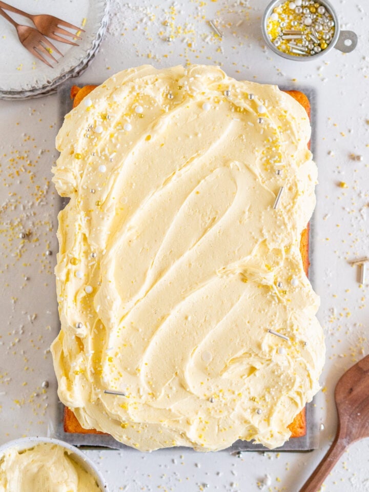 Lemon Yogurt Sheet Cake with Lemon Curd Swiss Meringue Buttercream