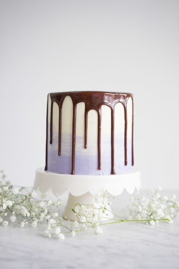 Honey lavender cake with vanilla german buttercream and lavender ganache drip