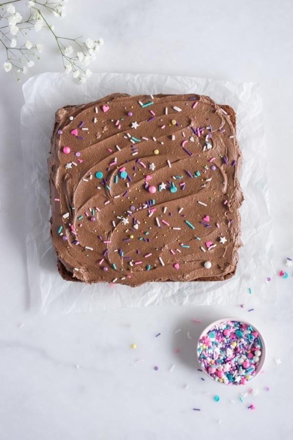 Banana Sheet Cake with Whipped Dark Chocolate Ganache