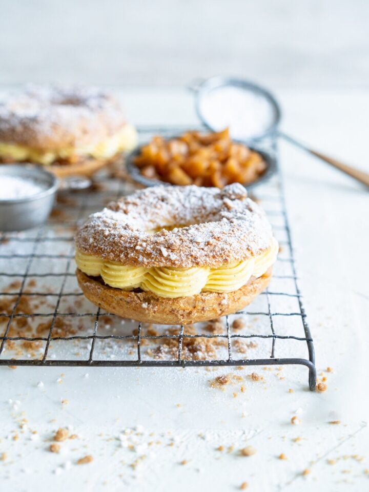 Paris Brest with Brown Butter Streusel, Custard Mousseline Cream and Spiced Apples