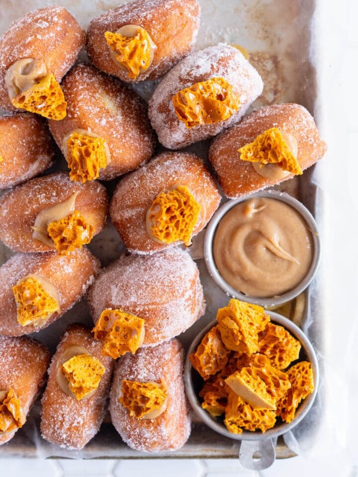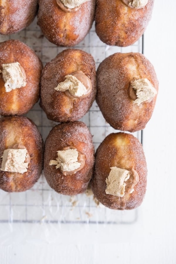 Banoffee Doughnuts - Brioche Doughnuts with Banana Salted Caramel Ganache and Honeycomb