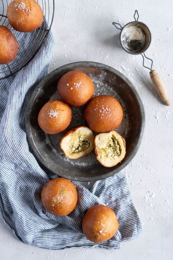 Basil Pesto and Feta Stuffed Savoury Brioche Doughnuts