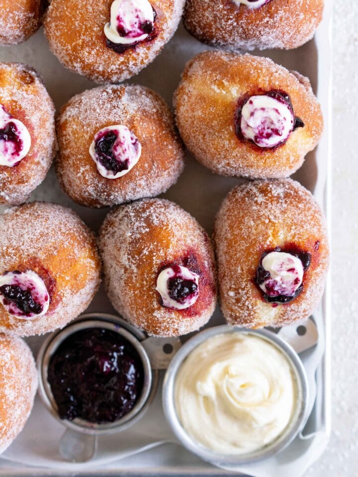 Doughnuts with Balsamic Blueberry and Cheesecake Filling