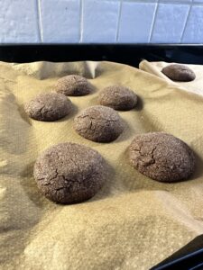 - Using a cookie scoop, scoop 2 tbsp worth of mixture at a time (about 40g). Roll into a ball using your hands, then roll generously in granulated sugar. Place on the baking tray, leaving room to spread (I had 8 cookies per baking tray).