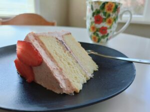 - I cheated just a little here and used my Swiss meringue buttercream recipe, because it’s what i’m used to (very very similar to Amanda’s), and then followed her instructions to make it strawberry flavoured. I also increased the amount slightly because I like to have more buttercream between the layers, and I like having a little as back up in case I end up doing a fancy design or the outside coat ends up a bit thicker.