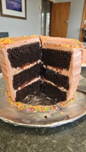 The married couple loved it, iced with the chocolate buttercream from the Funfetti cake recipe.