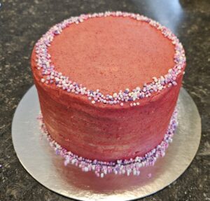 This cake was delicious. And surprisingly easy to make. I didn’t freeze the cake before decorating but chucked it in the fridge for the day. I’ll definitely make this again.
