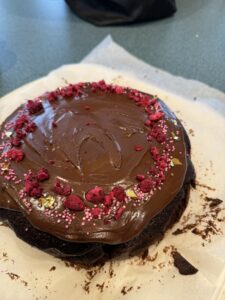 - Finish with the chocolate icing - whisk together all ingredients until smooth then spread over the cake and finish with sprinkles.