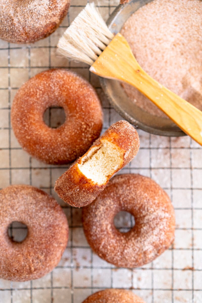 Hi hi! Popping in to share the recipe for these Cinnamon Sugar Doughnuts with you today! This is a small batch ish recipe - it makes a couple less than my regular doughnut recipe, and the process is a bit more chill. The doughnuts are super light and fluffy - this is an oil based dough rather than a butter based, so the doughnuts are a bit lighter in flavour, making them the perfect vessel for a delicious spicy cinnamon sugar coating. I love them, and I know that you will too.