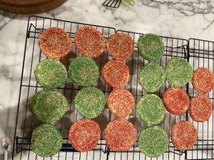 These are the best sugar cookies. I just made these cookies for probably the tenth time (no kidding!). This time I rolled them in holiday colored sugar instead of sugar in the raw. Very festive!