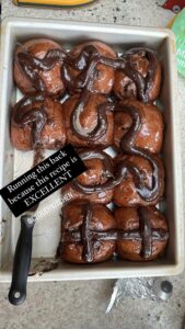 An excellent hot cross bun recipe, nice and soft and perfectly chocolatey. Will definitely be making these again.