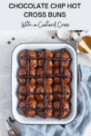 These super soft Chocolate Hot Cross Buns have a chocolate chip cardamom dough. They are filled with chocolate chips and finished with a chocolate custard cross. These are the perfect Chocolate Chip Hot Cross Buns!