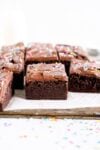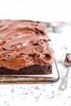 This Devil's Food Sheet Cake with Rich Chocolate Buttercream is the perfect recipe for chocolate lovers! The easy devil's food cake comes together quickly and is baked as a chocolate sheet cake, and is then topped with swirls of smooth chocolate buttercream and sprinkles. This recipe comes from 'Zoë Bakes Cakes', the new book from Zoë François!