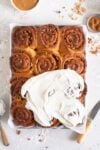 I often get asked this - and I don't recommend it. The filling leaks out overnight so you end up with super soggy rolls. You are best just accounting for a little extra time the next morning to assemble these. You can make the frosting ahead of time too if you want to save on time - just pull it out when you shape the rolls and give it a quick mix before using.